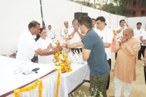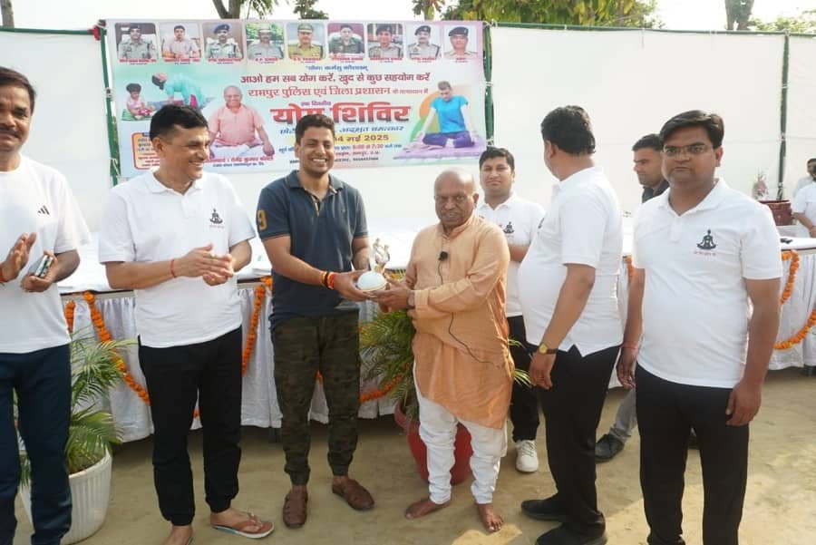 रामपुर: जिलाधिकारी, रामपुर एवं पुलिस अधीक्षक, द्वारा रिजर्व पुलिस लाइन, रामपुर परिसर में दीप प्रज्वलित कर सूर्य की पहली किरण के साथ एक दिवसीय योग शिविर का शुभारम्भ किया गया। इस शिविर के माध्यम से मौजूदा पुलिस कर्मियों को योग के सम्बन्ध में योगः कर्मसु कौशलम् । “आओ हम सब योग करें, खुद से कुछ सहयोग करें ।“ थीम से अवगत कराया गया । इस अवसर पर योगाचार्य देवेन्द्र कुमार बंसल द्वारा योगा टीम के साथ मौजूद होकर पुलिस लाइन ग्राउण्ड में योगा शिविर में उपस्थित पुलिस अधिकारी/कर्मचारी गणों को योग अभ्यास कराया गया एवं योगा व प्रणायाम से होने वाले लाभ ( छोटे छोटे टिप्स, अदभुत चमत्कार) के सम्बन्ध में जानकारी दी गयी । इस दौरान अपर पुलिस अधीक्षक, रामपुर एवं समस्त क्षेत्राधिकारी, रामपुर मौजूद रहे ।