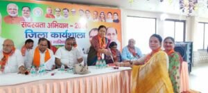 मोदीनगर : आज दिनांक 24/08/2024 को मोदीनगर विधानसभा क्षेत्र के ऐ.वी.एस गार्डन हापुड़ रोड मोदीनगर में भाजपा के सदस्यता अभियान -2024 कार्यशाला कार्यक्रम के अंतर्गत जिला कार्यशाला का आयोजन किया गया। जिसमें सभी कार्यकर्ताओं ने भाग लिया जिला कार्यशाला के मुख्य अतिथि श्री मानवेन्द्र सिंह जी MLC(जिला प्रभारी) ने कार्यकर्ताओं को संबोधित करते हुए कहा कि सदस्यता अभियान को सफल बनाने के लिए कार्यकर्ता को जी जान से जुट कर कार्य करना होगा ताकि ज्यादा से ज्यादा सदस्य बने और केंद्र और राज्य सरकार की जन कल्याणकारी नीतियों को जन-जन तक पहुंचा जा सके |