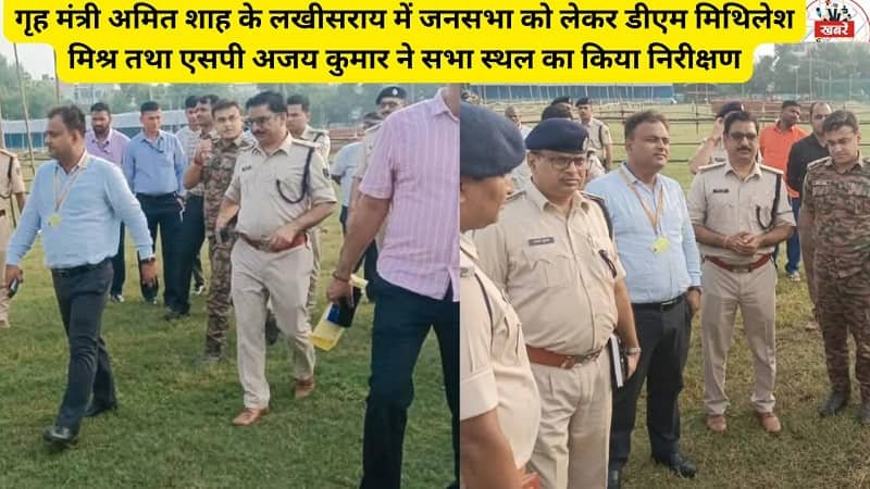 गृह मंत्री अमित शाह के लखीसराय में जनसभा को लेकर डीएम मिथिलेश मिश्र तथा एसपी अजय कुमार ने सभा स्थल का किया निरीक्षण