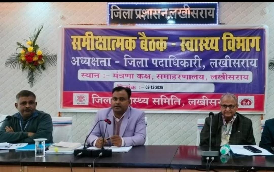 लखीसराय(सरफराज आलम) समाहरणालय,लखीसराय स्थित मंत्रणा कक्ष में जिला पदाधिकारी मिथिलेश मिश्र की अध्यक्षता में स्वास्थ्य विभाग की समीक्षात्मक बैठक आयोजित की गई।