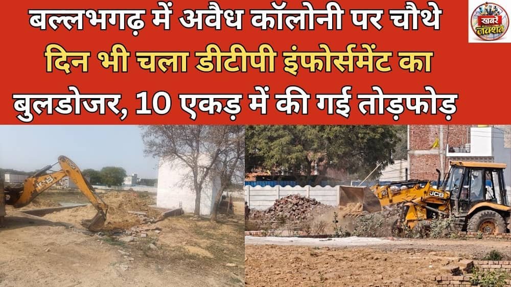 बल्लभगढ़ में अवैध कॉलोनी पर चौथे दिन भी चला डीटीपी इंफोर्समेंट का बुलडोजर, 10 एकड़ में की गई तोड़फोड़