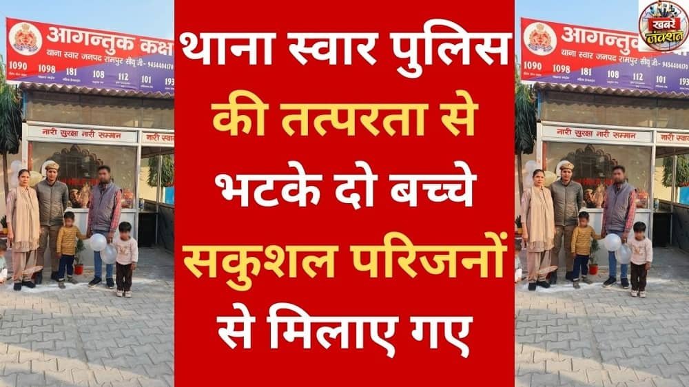 रामपुर। थाना स्वार पुलिस को सूचना प्राप्त हुई कि तहसील स्वार क्षेत्र में दो छोटे बच्चे इधर-उधर घूम रहे हैं, जो अपने पिता एवं घर का पता बताने में असमर्थ हैं। सूचना मिलते ही थाना स्वार पुलिस द्वारा त्वरित एवं संवेदनशील कार्यवाही की गई।