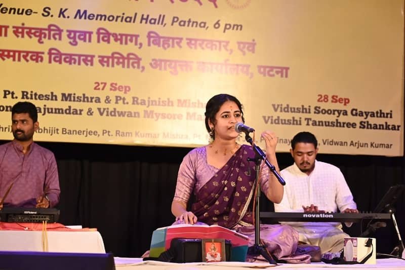 पटना : तीन दिवसीय बहुप्रतीक्षित सांस्कृतिक पर्व दुर्गा स्वरोत्सव 2025 का रविवार को पटना के एस के मेमोरियल हॉल में भव्य समापन हुआ। 26 से 28 सितम्बर तक आयोजित इस उत्सव ने भारतीय शास्त्रीय संगीत और नृत्य की आध्यात्मिकता और कलात्मक वैभव का अनुपम संगम प्रस्तुत किया। देश के ख्याति प्राप्त कलाकारों ने अपनी अद्भुत प्रस्तुतियों से दर्शकों को मंत्रमुग्ध कर दिया और भारतीय सांस्कृतिक धरोहर के प्रति अपनी गहरी निष्ठा प्रदर्शित की।