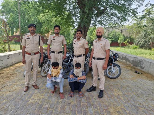 ऐलनाबाद, (एम.पी. भार्गव)। जिले में संपत्ति विरुद्ध अपराधों के विरुद्ध चलाए जा रहे विशेष अभियान के तहत एंटी व्हीकल थेफ्ट स्टाफ की पुलिस टीम ने एक अंतर्राज्यीय मोटरसाइकिल चोर गिरोह का भंडाफोड़ करते हुए दो आरोपियों को गिरफ्तार करने में बड़ी सफलता हासिल की है।