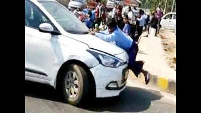 गाड़ी रोकने के लिए बोनट पर चढ़ गए