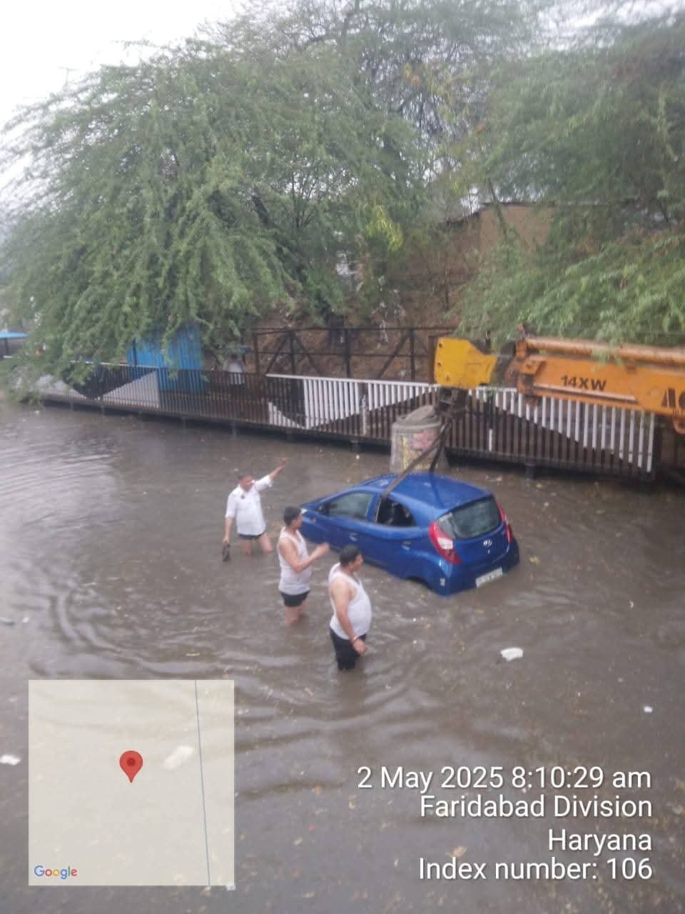 फरीदाबाद ट्रैफिक पुलिस बारिश के दौरान सड़क उपयोगकर्ताओं की मदद करती है, इसका आज एक ताजा उदाहरण एनएचपीसी अंडरपास पर देखने को मिला। ट्रैफिक पुलिस के एएसआई जाकिर हुसैन,सिपाही रविंदर और ड्राइवर नवल किशोर ने पानी/ जल भराव में उतरकर, पानी में फंसी कार को बाहर निकला