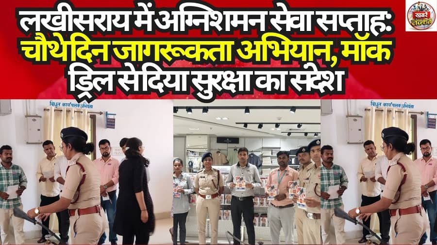 लखीसराय(सरफराज आलम)लखीसराय में बिहार अग्निशमन सेवा सप्ताह के चौथे दिन शुक्रवार को जिले के विभिन्न सरकारी कार्यालयों और सार्वजनिक स्थलों पर अग्नि सुरक्षा को लेकर व्यापक जागरूकता अभियान चलाया गया। इस क्रम में अनुमंडल अग्निशामालय पदाधिकारी विनिता लता के नेतृत्व में विशेष गोष्ठी और मॉक ड्रिल का आयोजन किया गया।