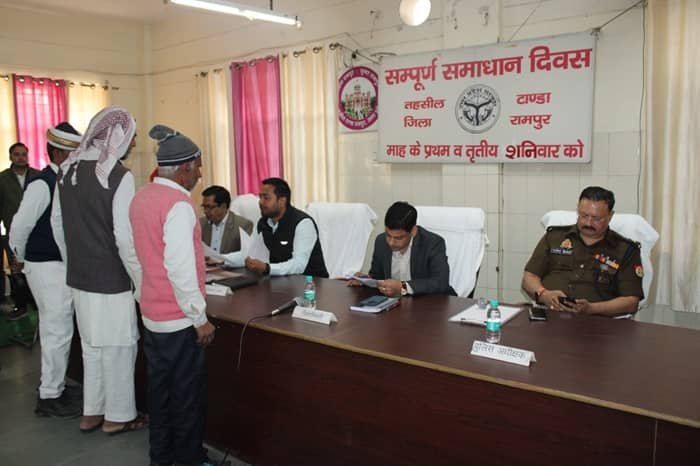 रामपुर,शासन के निर्देश पर तहसील टांडा के सभागार में जिलाधिकारी जोगिन्दर सिंह और पुलिस अधीक्षक राजेश द्विवेदी की उपस्थिति में संपूर्ण समाधान दिवस का आयोजन किया गया।
