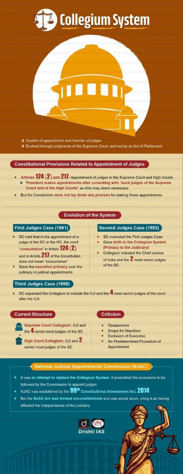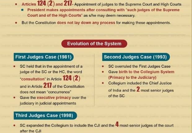 The Collegium system, which governs the appointment of judges in India, has evolved through judgments passed by the Supreme Court rather than by an Act of Parliament. While this system has its merits, it is not without significant flaws that hinder timely and fair judicial appointments.