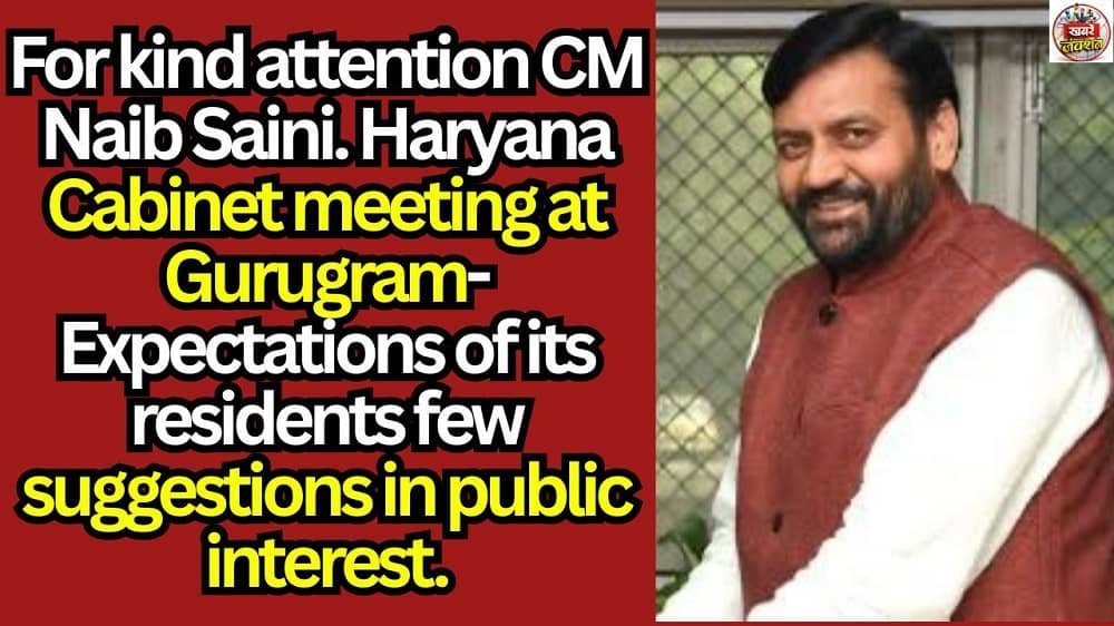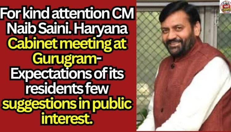 For kind attention CM Naib Saini. Haryana Cabinet meeting at Gurugram-Expectations of its residents few suggestions in public interest.