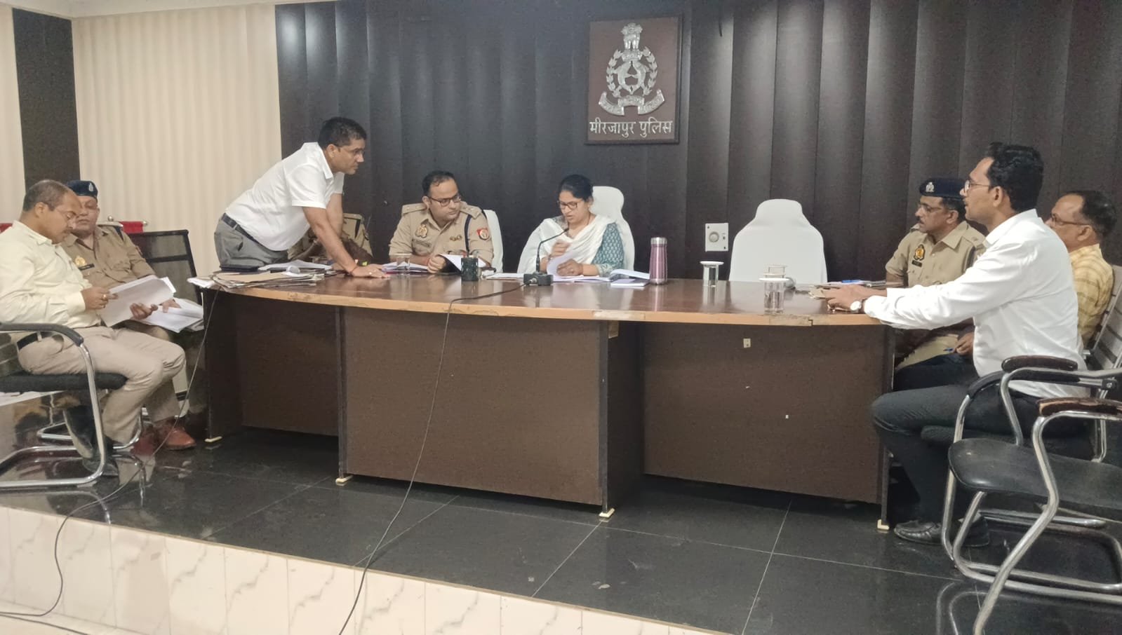 मीरजापुर। जिलाधिकारी प्रियंका निरंजन और पुलिस अधीक्षक अभिनन्द सिंह ने संयुक्त रूप से पुलिस के मनोरंजन कक्ष में सभी शासकीय अधिवक्ता एस0पी0ओ0, सभी मजिस्ट्रेट, क्षेत्राधिकारी व थानाध्यक्षो सहित अन्य अधिकारियों के साथ बैठक कर अभियोजन कार्य प्रगति, नवरात्र मेला व कानून व्यवस्था की समीक्षा की।
