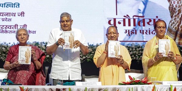 लखनऊ: उप राष्ट्रपति जगदीप धनखड़ जी ने 1मई को यहां डाॅ0 ए0पी0जे0 अब्दुल कलाम प्राविधिक विश्वविद्यालय में उत्तर प्रदेश की राज्यपाल श्रीमती आनंदीबेन पटेल जी के जीवनवृत्त पर आधारित पुस्तक ‘चुनौतियां मुझे पसन्द हैं’ का विमोचन किया। इस अवसर पर उत्तर प्रदेश की राज्यपाल आनंदीबेन पटेल जी तथा मुख्यमंत्री योगी आदित्यनाथ जी भी उपस्थित थे।