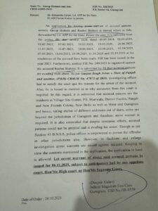 Highly placed sources told that a VVIP from Chandigarh has spoken to Gurugram Police for not arresting the accused but now intervention of Court has put Gurugram Police in catch-२२ . “.Dahiya argued in the court “Police is working in collusion with the main accused and is deliberately omitting to arrest the accused persons alleging that Police is very well aware with the place of residence of the accused who are publicly attending the election campaigns and marriage ceremonies and Police is conducting investigations in such a manner that they want to shield the accused persons and invoke less grave sections .