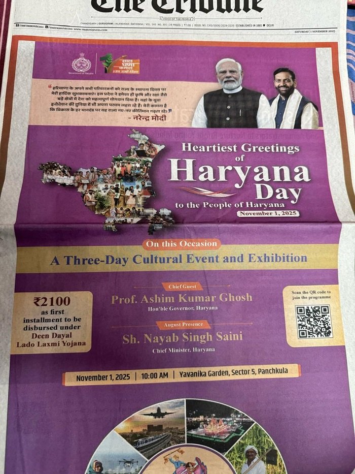 Happy birthday Haryana- Delivered by Dr Indira Gandhi ( then PM) in ceaserian delivery.Naib Singh Saini led Haryana BJP government is celebrating it by organising A Three -Day Cultural Event and Exhibition at Panchkula.