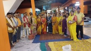 सदस्यों ने राधा नाम के सांचो से तिलक लगाकर सभी का स्वागत किया एवं बधाई दी। एवं विनीता पाण्डे द्वारा सभी राधा भक्तों का पटका पहनाकर स्वागत किया गया एवं कार्यक्रम में राधा कृष्ण की प्रतिमा पर सभी ने पुष्प अर्पित कर सदस्यों को प्रसादी वितरण की