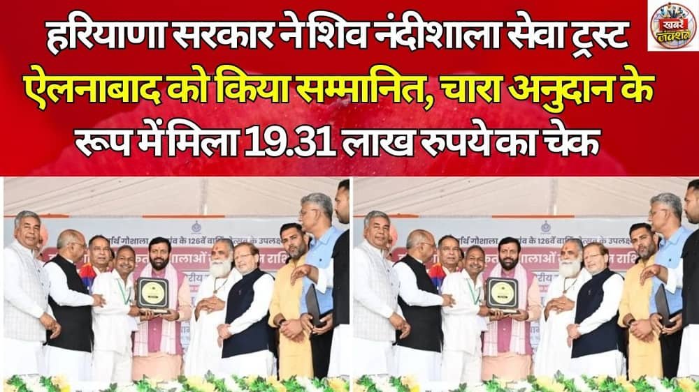 हरियाणा सरकार ने शिव नंदीशाला सेवा ट्रस्ट ऐलनाबाद को किया सम्मानित, चारा अनुदान के रूप में मिला 19.31 लाख रुपये का चेक