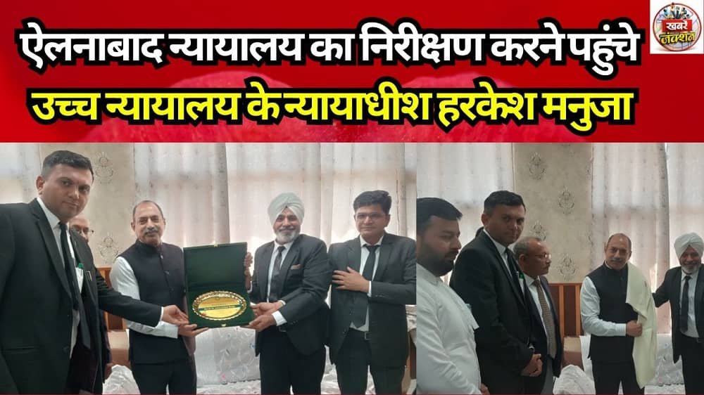 ऐलनाबाद (एम पी भार्गव)। उप मंडल न्यायालय परिसर में मंगलवार को हरियाणा-पंजाब उच्च न्यायालय के माननीय न्यायाधीश हरकेश मनुजा निरीक्षण के लिए पहुंचे। इस दौरान उन्होंने पूरे कोर्ट परिसर का दौरा कर न्यायालय की कार्यप्रणाली और व्यवस्थाओं का बारीकी से जायजा लिया।