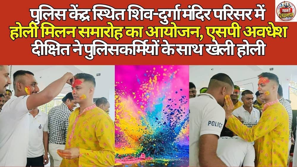 पुलिस केंद्र स्थित शिव-दुर्गा मंदिर परिसर में होली मिलन समारोह का आयोजन, एसपी अवधेश दीक्षित ने पुलिसकर्मियों के साथ खेली होली