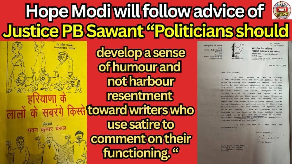 Hope Modi will follow advice of Justice PB Sawant “Politicians should develop a sense of humour and not harbour resentment toward writers who use satire to comment on their functioning. “