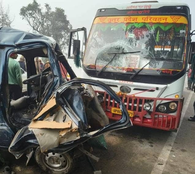 बदायूं में भीषण सड़क हादसा, स्कूल वैन, कैंटर और रोडवेज बस की भिड़ंत में छात्र समेत तीन की मौत