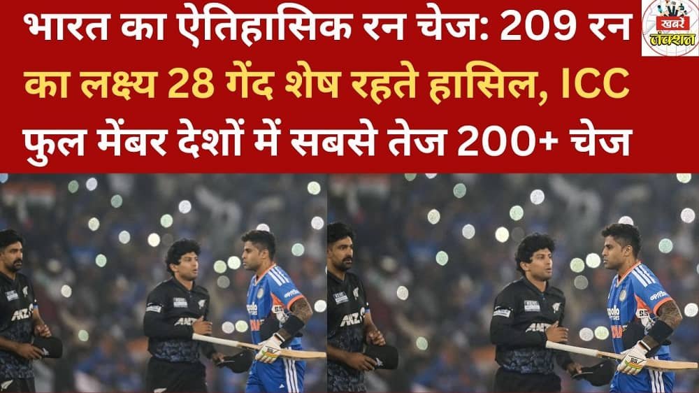 टी20 क्रिकेट में अपने बेखौफ और आक्रामक अंदाज के लिए पहचानी जाने वाली भारतीय टीम ने न्यूजीलैंड के खिलाफ रायपुर में इतिहास रच दिया है। कीवी टीम द्वारा दिए गए 209 रनों के विशाल लक्ष्य को भारत ने महज 15.2 ओवर में, यानी 28 गेंदें शेष रहते हासिल कर लिया। यह ICC के पूर्ण सदस्य देशों के बीच टी20 इंटरनेशनल में 200 से अधिक रन का सबसे तेज सफल रन चेज है।