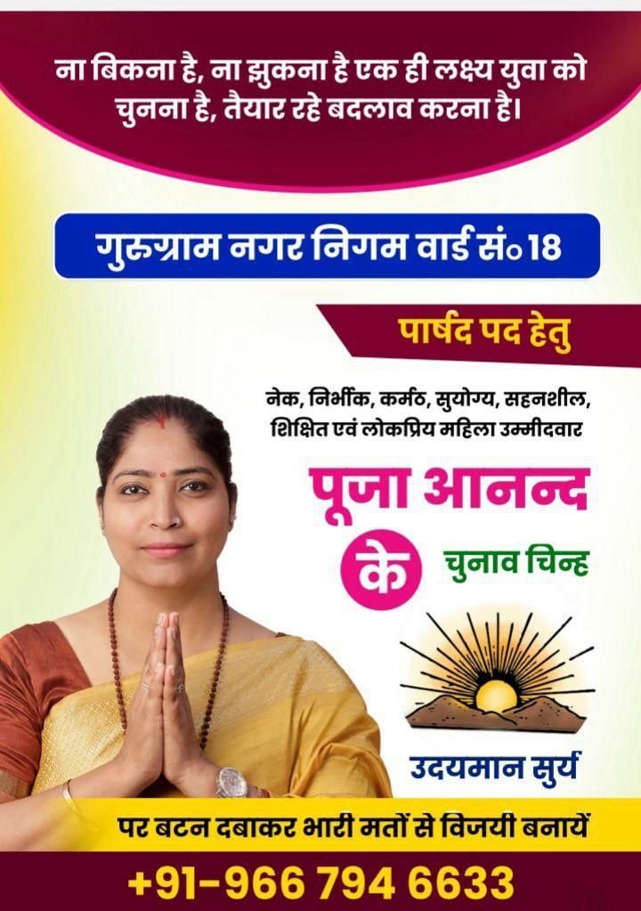 I am Pooja Anand, a strong independent candidate contesting from Ward no.18.