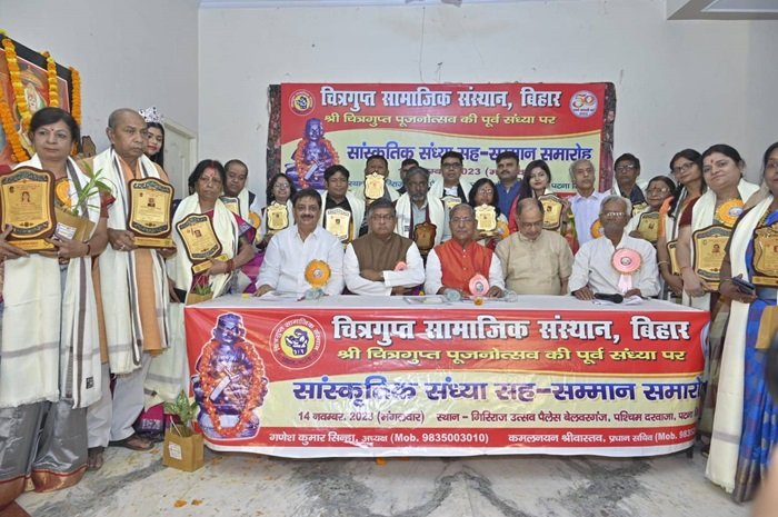 पटना सिटी। सामाजिक सांस्कृतिक संस्था चित्रगुप्त सामाजिक संस्थान के स्वर्ण जयंती वर्ष पर आज भगवान श्री चित्रगुप्त पूजनोत्सव की पूर्व संध्या पर सांस्कृतिक संध्या सह सम्मान समारोह का आयोजन गिरिराज उत्सव पैलेस में किया गया। समारोह का उद्घाटन पूर्व केंद्रीय मंत्री व सांसद रविशंकर प्रसाद ने दीप प्रज्वलित कर किया। समारोह की अध्यक्षता ख्यातिप्राप्त चिकित्सक पद्मश्री डॉक्टर गोपाल प्रसाद सिन्हा ने की। कार्यक्रम का संचालन कमलनयन श्रीवास्तव ने किया । इस अवसर पर प्रकाशित ‘कलमजीवी’ पत्रिका के स्वर्ण जयंती अंक का लोकार्पण बिहार हिंदी प्रगति समिति के अध्यक्ष कविवर सत्यनारायण ने किया।