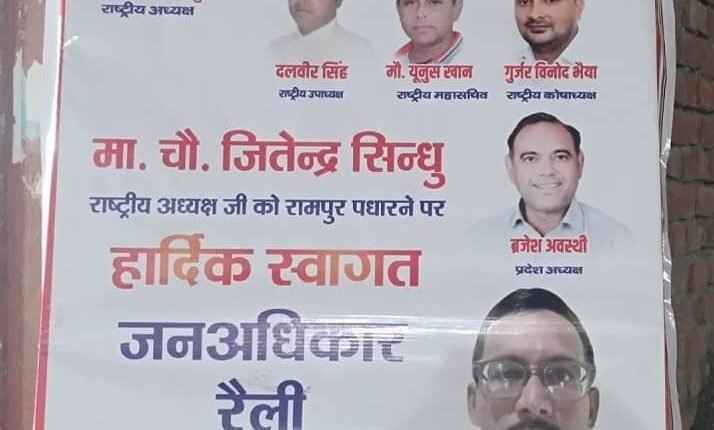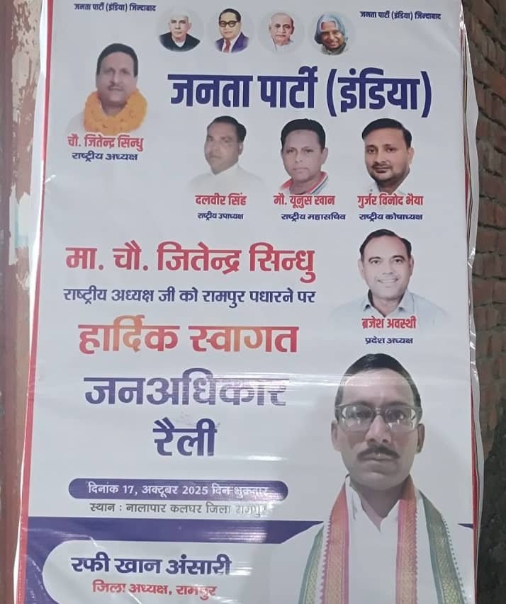रामपुर में जनता पार्टी के राष्ट्रीय अध्यक्ष जितेंद्र सिंधु का आगमन, रफी अंसारी बने जिला अध्यक्ष — प्रदेश में 100 सीटों पर लड़ेगी पार्टी