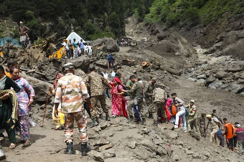 बचाव कार्य में एनडीआरएफ, सेना, राष्ट्रीय राइफल्स, एसडीआरएफ, पुलिस, और कई स्वयंसेवी संगठन लगे हैं। सेना ने 300 जवानों के साथ मेडिकल डिटैचमेंट तैनात किए हैं। हेलीकॉप्टर खराब मौसम के कारण इस्तेमाल नहीं हो सके, इसलिए एनडीआरएफ टीम सड़क मार्ग से पहुंची।