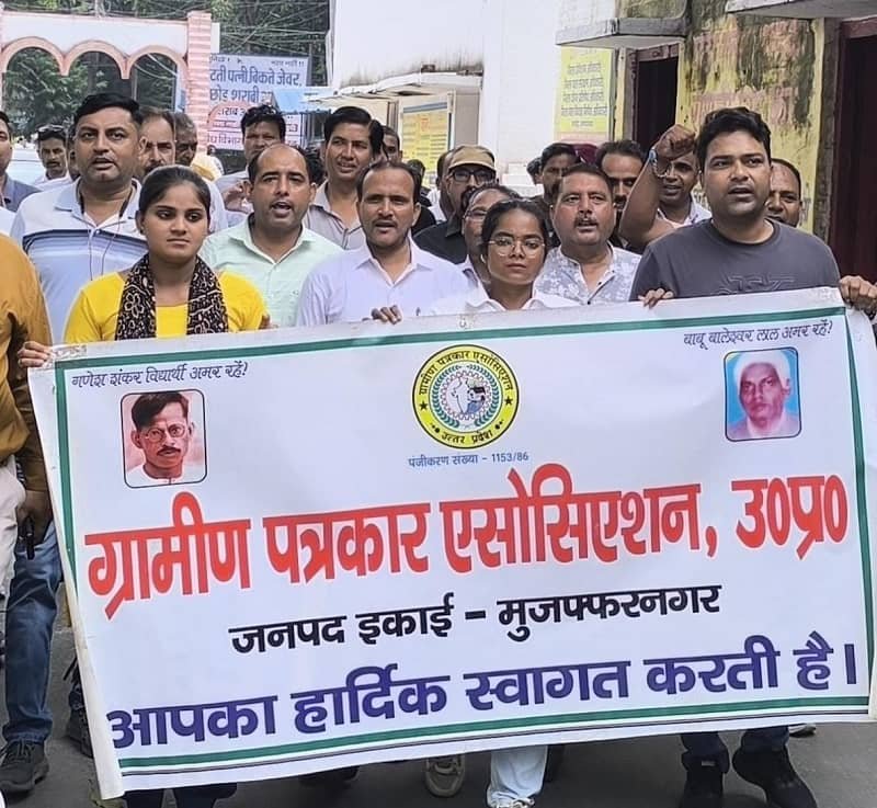 मुजफ्फरनगर : जिले के पत्रकारों ने आयुष्मान कार्ड, बीमा याेजना, पेंशन, उत्पीडन, प्राकृतिक आपदा में आर्थिक सहायता समेत सात सूत्रीय मांगों को लेकर पत्रकार एकता जिंदाबाद, बाबू बालेश्वर लाल अमर रहे के नारों के बीच जुलूस निकालकर मुख्यमंत्री के नाम संबोधित एक ज्ञापन एडीएम प्रशासन को सौंपा।