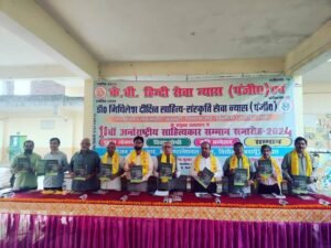बदायूँ: के0बी0 हिंदी सेवा न्यास (पंजीकृत) और डॉ. मिथिलेश दीक्षित साहित्य-संस्कृति सेवा न्यास (पंजीकृत) के तत्वाधान में जनपद बदायूँ के बिसौली नगर स्थित आर0के0 इंटरनेशनल स्कूल में एक भव्य सम्मान समारोह का आयोजन किया गया। इस समारोह में देश के विभिन्न 16 प्रान्तों से आए साहित्यकारों को उनके उत्कृष्ट योगदान के लिए सम्मानित किया गया।