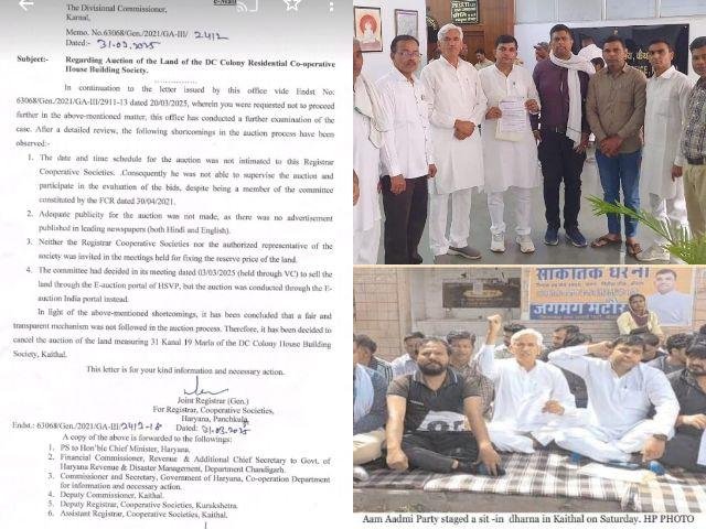 कैथल की डीसी हाउस बिल्डिंग सोसायटी की ज़मीन की नीलामी का मामला दिन-प्रतिदिन और उलझता जा रहा है। याद रहे कि सौ करोड़ रुपये से अधिक कीमत की ज़मीन को करीब तेरह करोड़ रुपये में नीलाम कर दिया गया था। आम आदमी पार्टी के ज़िला कैथल अध्यक्ष जगमग मटौर और मास्टर सतबीर गोयत द्वारा विरोध किए जाने के बाद हरियाणा सरकार ने नीलामी रद्द कर दी थी। लेकिन अब भी सबसे बड़ा सवाल यही है कि नीलामी के लिए जिम्मेदार अधिकारियों के खिलाफ कोई कार्रवाई क्यों नहीं की गई?
