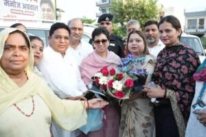 बल्लभगढ़ कांग्रेस कार्यालय पहुंचने पर कुमारी सैलजा का हुआ भव्य स्वागत