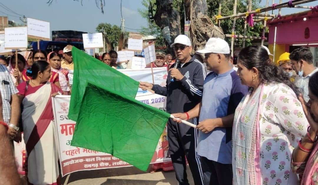 लखीसराय के डीएम मिथिलेश मिश्र की अध्यक्षता में निकाली गई श्रम दान एवं मतदाता जागरूकता रैली