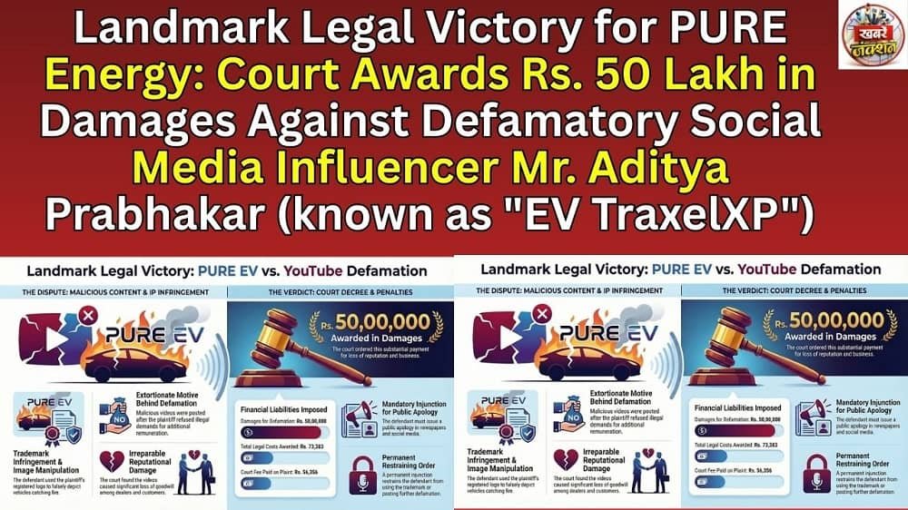 Landmark Legal Victory for PURE Energy: Court Awards Rs. 50 Lakh in Damages Against Defamatory Social Media Influencer Mr. Aditya Prabhakar (known as “EV TraxelXP”)