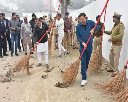 रामपुर. पुलिस अधीक्षक राजेश द्विवेदी एवं नगर विधायक, आकाश सक्सैना द्वारा स्वच्छ भारत मिशन अभियान के अंतर्गत पुलिस लाइन प्रांगण मे वृहद स्तर पर समस्त अधिकारी और कर्मचारीगणों के साथ साफ- सफाई कर श्रमदान किया गया एवं नगर,विधायक आकाश सक्सैना को रामपुर पुलिस की तरफ से स्मृति चिह्न सप्रेम भेंट किया गया।Launch of Clean India, Healthy India and Prosperous India campaign इसी क्रम में पुलिस लाइन प्रांगण मे स्थित विभिन्न शाखा और कार्यालयों में वृहद स्तर पर हुए साफ-सफाई का निरीक्षण कर सम्बन्धित को आवश्यक दिशा-निर्देश दिया गया।Launch of Clean India, Healthy India and Prosperous India campaign
