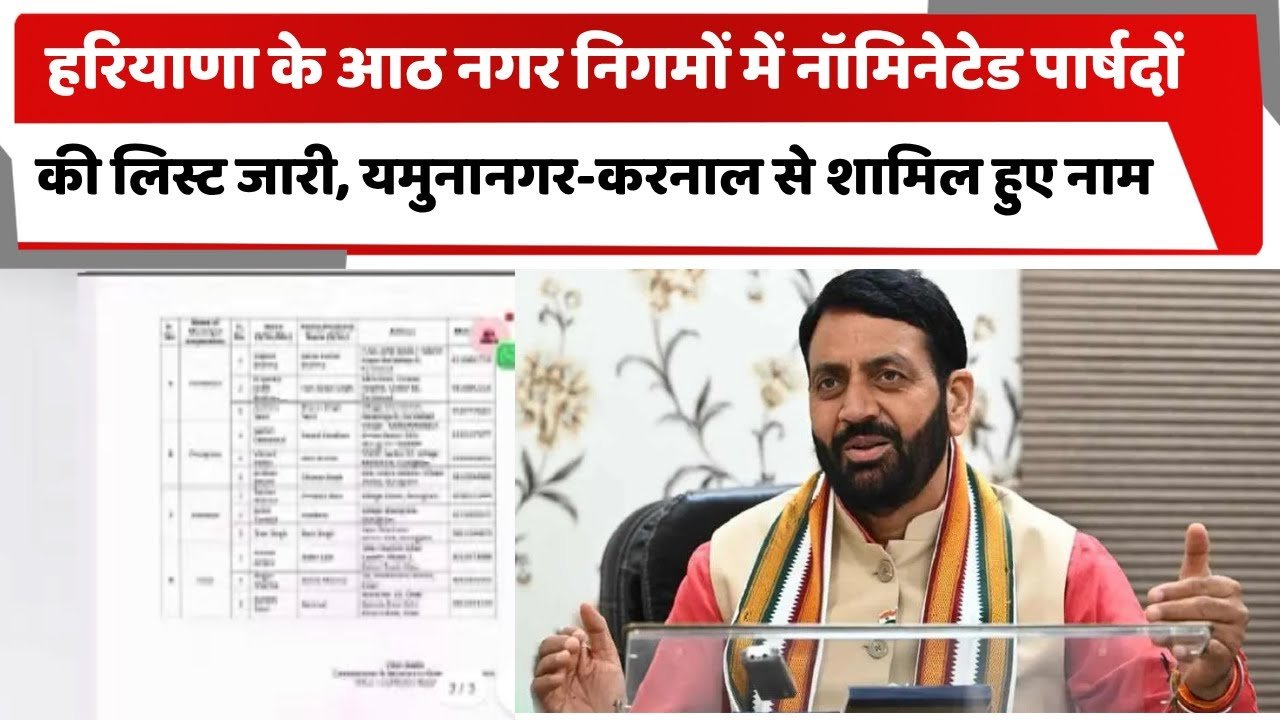 हरियाणा के आठ नगर निगमों के लिए नामित पार्षदों की सूची हुई जारी, प्रत्येक निगम से तीन पार्षद नियुक्त