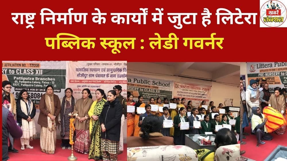 पटना। मौजीपुर स्थित लिटेरा पब्लिक स्कूल शिक्षा के साथ-साथ स्थानीय पंचायत को गोद लेकर राष्ट्र निर्माण में भी अपनी महत्वपूर्ण भूमिका का निर्वहन कर रहा है। ये बातें लेडी गवर्नर रेशमा आरिफ ने स्कूल में आयोजित एक कार्यक्रम में कही। लेडी गवर्नर ने कहा कि पढ़ाई और शिक्षा का काम तो हर स्कूल करते हैं, लेकिन लिटेरा पब्लिक स्कूल में समय समय पर हेल्थ अवेयरनेस कार्यक्रम का आयोजन करता रहा है। साथ ही जरूरतमंद और दिव्यांगों के लिए जरूरी सामग्री भी उपलब्ध कराता रहा है।