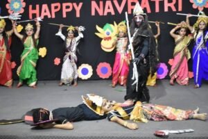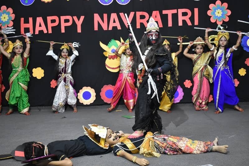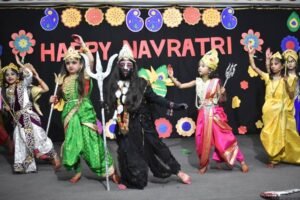 देवी दुर्गा के विभिन्न स्वरूपों को प्रदर्शित करते हुए निहारिका, ओजस्वी, यशस्वी, लवि, सिमरत, श्रव्या,कुशाली, माही, अवनी, भव्या, अवि वर्मा, रुद्रांश, कनक, यशवी एवं विधिका ने माँ काली द्वारा असुरों के संहार को दर्शाते हुए उत्कृष्ट नृत्य नाटिका प्रस्तुत की ।