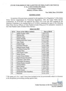 आईपीएस काडर में प्रोन्नत किए गए अफसरों में राकेश कुमार सिंह, लाल भरत कुमार पाल, रश्मि रानी, सुभाष चंद्र गंगवार, विश्वजीत श्रीवास्तव, चिरंजीव नाथ सिन्हा, और मनोज कुमार सिंह जैसे नाम शामिल हैं।