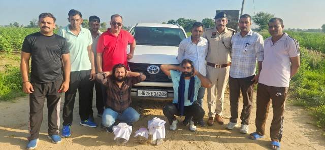 ऐलनाबाद: जिला पुलिस सिरसा द्वारा अपराध व अपराधियों के विरुद्ध चलाए जा रहे अभियान के दौरान अपराध शाखा ऐलनाबाद प्रभारी निरीक्षक धर्मबीर सिंह के निर्देशानुसार ASI सुखदीप सिंह के नेतृत्व में गांव नाईवाला क्षेत्र में गुप्त सूचना के आधार पर बड़ी कार्रवाई को अंजाम दिया। इस दौरान दो आरोपियों – देवेंद्र सिंह उर्फ हीरा पुत्र स्वर्ण सिंह निवासी नाईवाला तथा राधा कृष्ण उर्फ राधे पुत्र ओमप्रकाश निवासी दूढियावाली, जिला सिरसा – को अवैध हथियार, कारतूस, भारी नकदी तथा फर्जी नंबर प्लेट लगी फॉर्च्यूनर गाड़ी सहित काबू किया गया।
