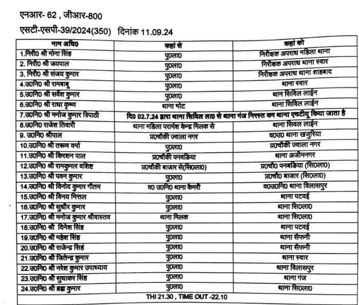 रामपुर एसपी विद्यासागर मिश्र द्वारा पुलिस विभाग में बड़ा प्रशासनिक फेरबदल