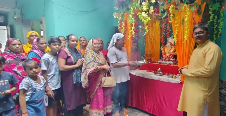 उझानी। श्री गणेश चतुर्थी के पावन अवसर पर नगर में भक्ति, उल्लास और आस्था का अनोखा संगम देखने को मिला। नझियाई मुहल्ला स्थित उमाशंकर शर्मा के आवास पर मंगलमूर्ति भगवान श्री गणेश की प्रतिमा स्थापित कर पूजा-अर्चना की गई। वेदमंत्रों की ध्वनि और आरती की गूंज से वातावरण भक्तिरस से सराबोर हो गया।