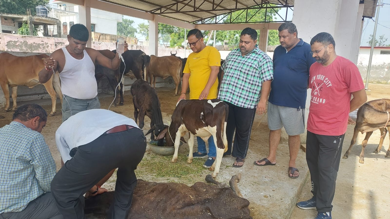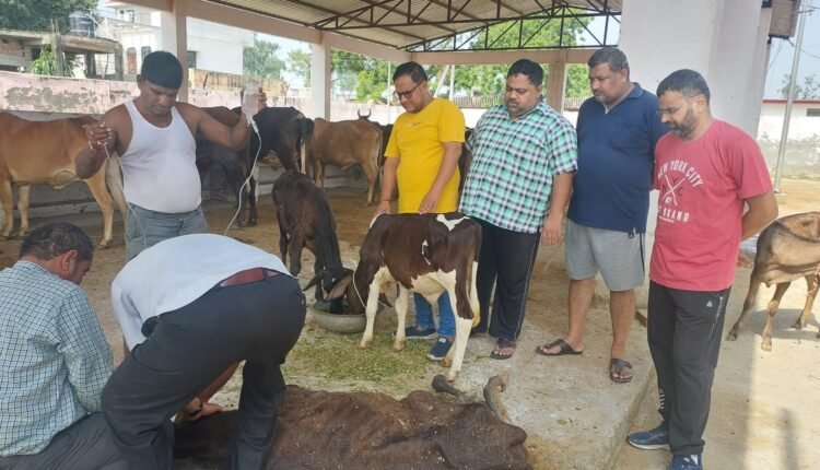 गौ सेवकों के सहयोग से भरपेट चारा व पशु आहार खा रहे हैं गोवंश