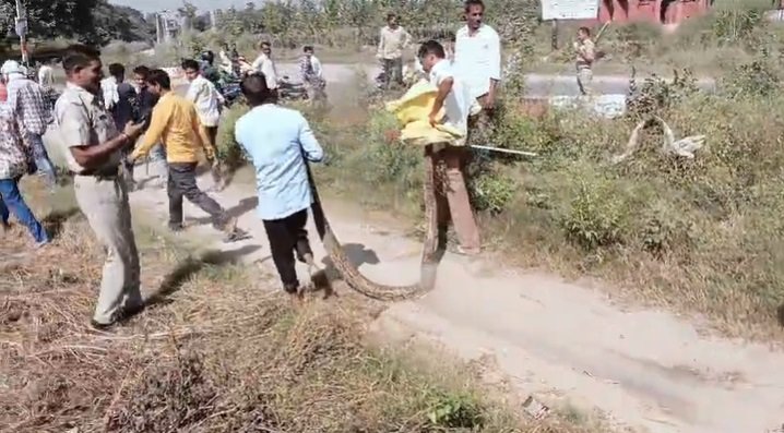 मीरापुर: गांव किथोड़ा की टूटी पुलिया के पास विशालकाय अजगर मिलने से हड़कंप, वन विभाग ने अजगर को सुरक्षित जंगल में छोड़ा