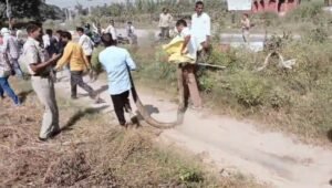 अजगर की सूचना मिलते ही ग्रामीणों ने तुरंत वन विभाग को सूचित किया। वन विभाग की टीम, जिसमें कर्मी बॉबी सिंह, रहीश और सराफत शामिल थे, मौके पर पहुंची और घंटों की मशक्कत के बाद 12 फुट लंबा और लगभग 55 किलो वजन का विशालकाय अजगर पकड़ लिया।