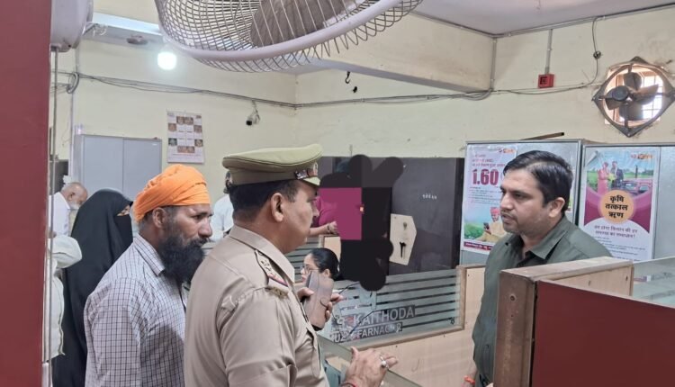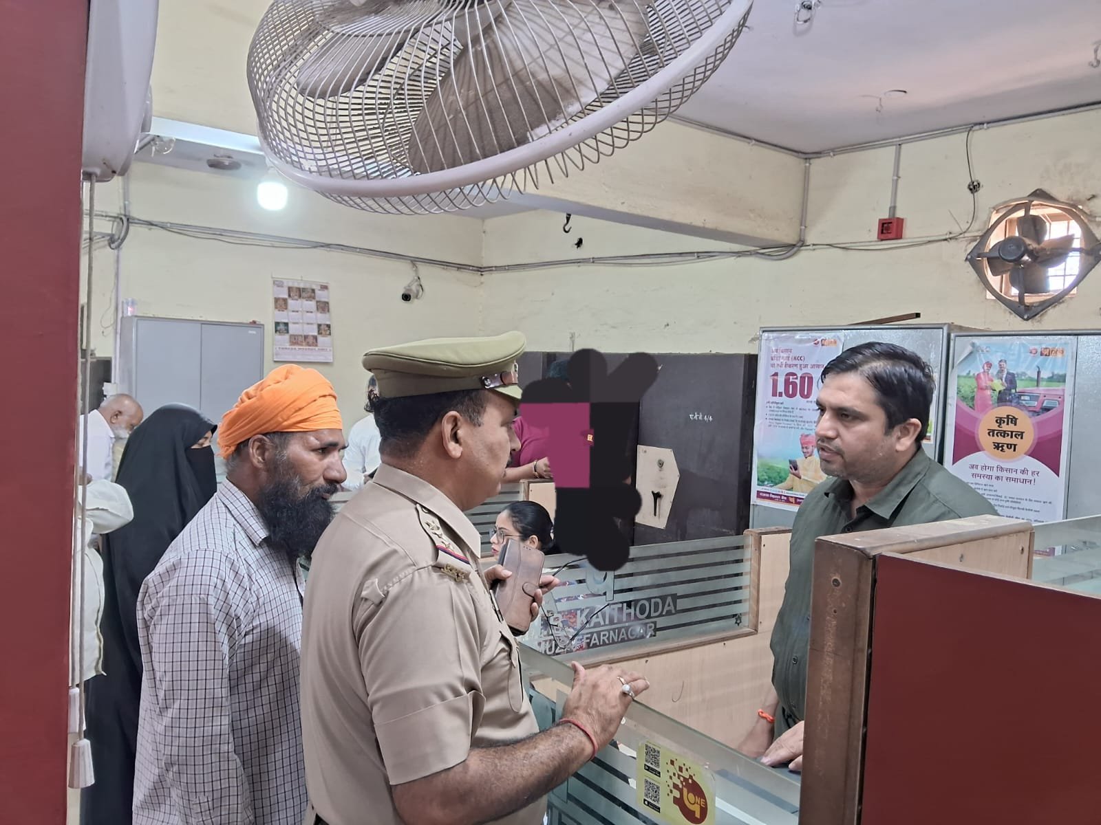 शुक्रवार को मीरापुर इंस्पेक्टर रवेन्द्र सिंह पुलिस टीम लेकर कस्बे के पंजाब नेशनल बैंक कैथोडा में पहुंचे यहा उन्होंने बैंक के अंदर ग्राहकों से लाईन लगाकर शांतिपूर्वक लेन-देन करने की अपील की। इसके बाद इंस्पेक्टर ने बैंक अधिकारी मुलेन्दर सिंह चौहान से भी बैंक की सुरक्षा को लेकर चर्चा करते हुए बैंक में मौजूद सुरक्षा इंतजामो को गहनता से देखा तथा उन्हें निर्देशित करते हुए कहा कि बैंक के सभी सीसीटीवी हमेशा चलते रहने चाहिए यदि बैंक के अन्दर या आसपास कोई सन्दिग्ध व्यक्ति दिखे तो उसकी सूचना तत्काल पुलिस को दे। वहीं पुलिस द्वारा बैंक के बाहर खड़े वाहनों की चेकिंग भी की गई।