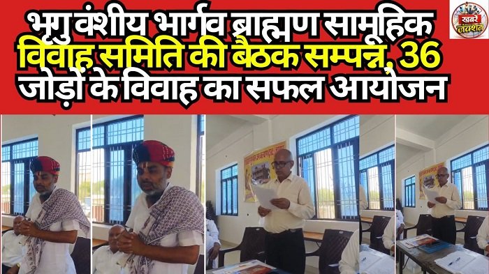 ऐलनाबाद,(एम.पी. भार्गव)। राजस्थान भृगु वंशीय भार्गव ब्राह्मण सामूहिक विवाह समिति, जयपुर द्वारा जयपुर में 26 अप्रैल को एक महत्वपूर्ण बैठक एवं आम सभा का आयोजन किया गया। यह बैठक प्रातः 11 बजे से अपराह्न 3 बजे तक चली, जिसमें समिति के कार्यों और भविष्य की योजनाओं पर विस्तृत चर्चा की गई।
