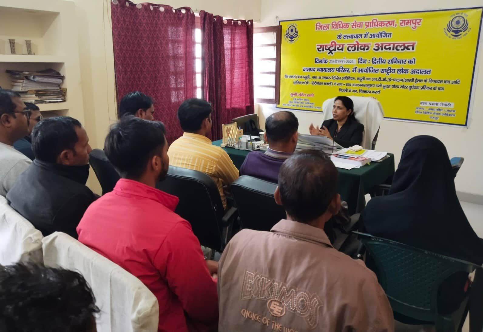 सुश्री रश्मि रानी, पूर्ण कालिक सचिव, जिला विधिक सेवा प्राधिकरण, रामपुर द्वारा आगामी दिनांक 9.12.2023 को राष्ट्रीय लोक अदालत का आयोजन के संबंध में जानकारी दी गयी। लोक अदालत में अधिक से अधिक वादो को लगवाकर उनका निस्तारण सुलह समझौता के आधार पर करवाये। राष्ट्रीय लोक अदालत के माध्यम से बैंक मामले, धारा-138 पराक्रम्य लिखित अधिनियम, वसूली वाद आदि सभी सुलह योग्य आपराधिक वादों, सिविल वादों, भूमि अधिग्रहण वादों, मोटर दुर्घटना प्रतिकर के वाद, पारिवारिक वादों, स्टाम्प वादों, उपभोक्ता फोरम वादों, राजस्व वादों, चकबंदी वादों, श्रम मामलों, नगर पालिका टैक्स वसूली मामलों, विद्युत अधिनियम के अन्तर्गत सुलह योग्य वाद, अन्तिम रिपोर्ट धारा 446 द0प्र0सं0 संबंधी मामले, पब्लिक प्रिविसेज एक्ट संबंधी मामले, उत्तराधिकार संबंधी मामले, आयुध अधिनियम के प्रकरण, बीमा संबंधी वाद, स्थानीय विधियों के अन्तर्गत शमनीय वाद, सेवा/वेतन संबंधी वाद सेवानिवृत्ति परिलाभों से संबंधित प्रकरण, किरायेदारी वाद, वन अधिनियम के अन्तर्गत प्रकरणों का निस्तारण किया जायेगा।