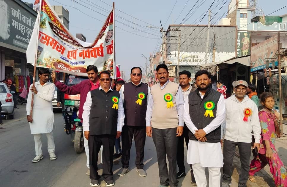 शोभायात्रा में सर्वप्रथम भजन गाते हुए मंडली चल रही थी और पीछे-पीछे ईसाई समुदाय के लोग व विश्वासी लोग प्रभु यीशु का गुणगान करते हुए चल रहे थे।